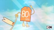 After Starfire said that she would partake in Black Friday he appeared. He is a price tag with a cowboy hat and boots. He gave the Teen Titans 99% off everything because they figured out the true meaning of Black Friday.