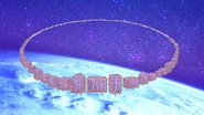 In space, John and all the other bathrooms joined hands, forming a huge circle over the planet. Suddenly, they started to revolve counterclockwise at a sound barrier-speed. In unison, they rocket off into the distance, where they expectantly find another planet to live on. With nothing left to do, and in need of the bathroom, Raven hatches an idea; they all break out into the Pee Pee Dance.