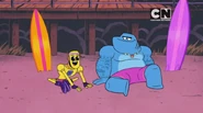 At first, Robot Man was going to arrest King Shark for manipulating him, until King Shark revealed that he was sincere enough to tattoo himself with the face of Robot Man. In the end, Robot Man let King Shark return to the ocean, after King Shark acknowledged him to be extreme.
