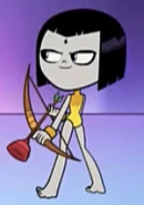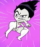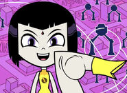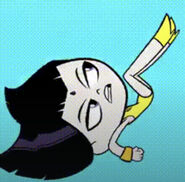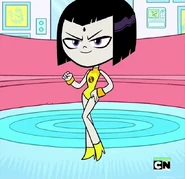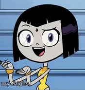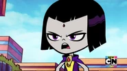 - In "Legs", after Robin steals her cloak, Raven's leggy figure would be revealed and she would transform into this alter ego, while Cyborg gets stuck in Raven's cloak, revealing a dark side of his personality.