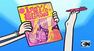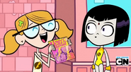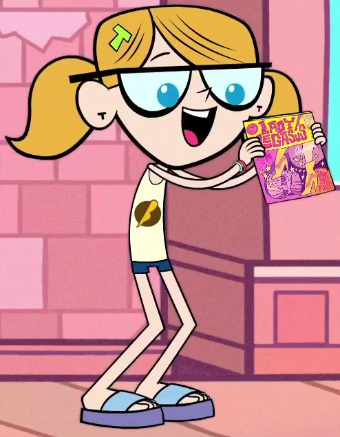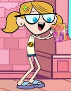 She is seen in "Legs", screaming in excitement and holding out her Lady Legasus comic book to be autographed by Lady Legasus. When Raven smiles and obliges, she runs off giggling happily.