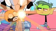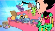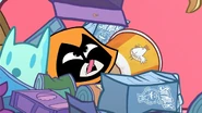 When Raven was divided by the Mysterious Prism, Orange Raven was one of the personalities that emerged. She is often seen sleeping, burping or eating. After the other emoti-clones left Titans Tower, she stayed and laid down on the couch the whole time, eating everything in the fridge and then burping. She was in the orange crystal, sleeping in it and waking up after she gets out.