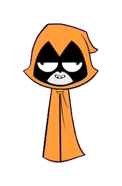 Orange Raven looks exactly like Raven only she wears an orange cloak. She also has small, derped eyes and a burger buckle on her cloak. Her teeth are circled.