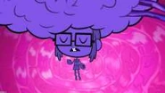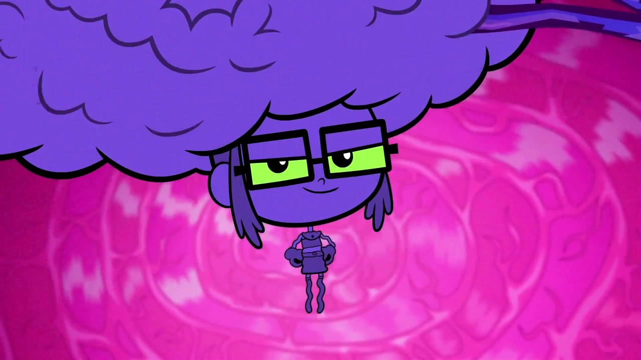However, this excess of knowledge caused her to be a bummer just like Raven, and one day, when Starfire's brain had expanded to a ferocious size, Raven confessed that she aided her magically...The Titans shrunk down in the T-Sub and started exploring her brain. As they dug deeper in, Robin tried to destroy some purple strands of pure knowledge, but after severing them, they simply regenerated and grew back. They had to resort to finding the source.