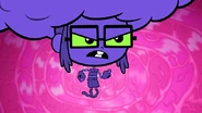 In the prefrontal cortex or something, the Titans closed in on a huge mass of purple unnatural knowledge. From the bottom of it spawned sort of a mini-version of Starfire- Starfire's Knowledge. After trying to blow it up with some inaccurate missiles and painless lasers, the knowledge blasted the Titans with a bolt of wisdom. But then, Raven hypothesized that they could use IGNORANCE to stop Starfire's Knowledge. So, the heroes started acting really foolish, much like Starfire usually did. This severely weakened the brain knowledge, and as a final blow, Robin exploded it with a huge laser cannon. Starfire's knowledge splattered all over the T-Sub's windshield, but luckily they had windshield wipers.