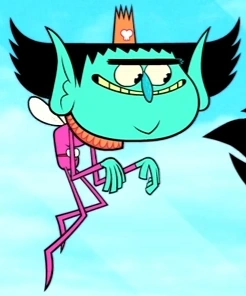 She has blue skin and black hair shaped like a smile. Her complexion is sort of elfish, with sharp pointy ears and a large nose. The Tooth Fairy also has a unibrow, and she carries around a wand with a large molar fixed to the end of it.